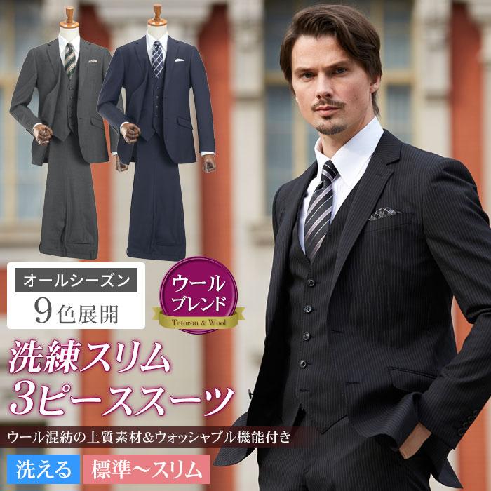 スーツ メンズ スリーピース 2ツボタン 春夏 スリム おしゃれ 洗える パンツウォッシャブル 安い アウトレット スーツハンガー付属 Ac96 スーツスタイルmarutomi ヤフー店 通販 Yahoo ショッピング